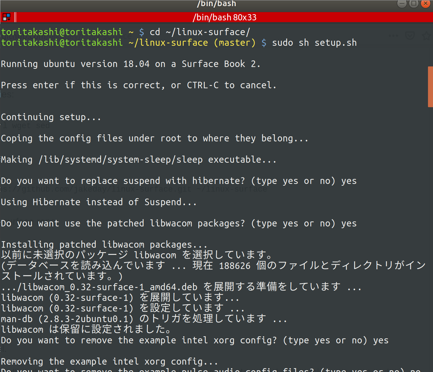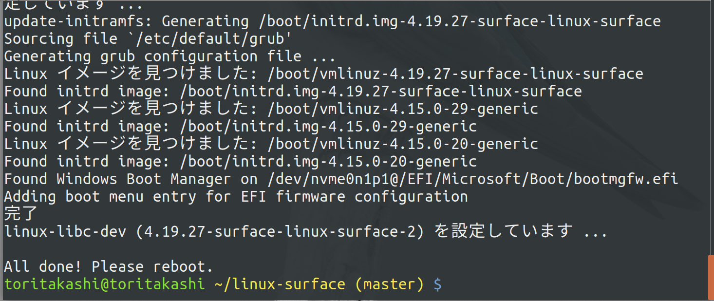 $ cd ~/linux-surface $ sudo sh setup.sh