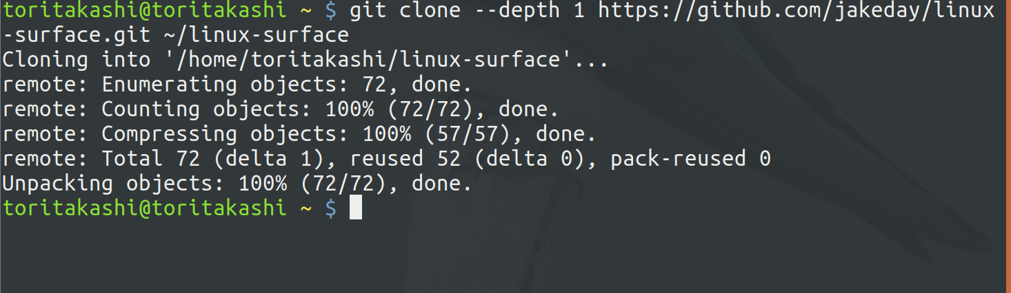 git clone --depth 1 https://github.com/jakeday/linux-surface.git ~/linux-surface