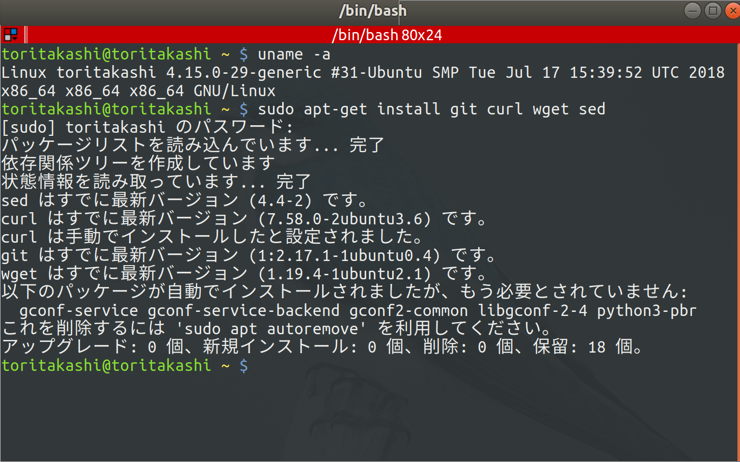$ sudo apt-get install git curl wget sed