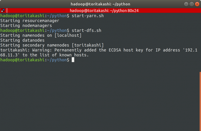 $ ./start-yarn.sh $ ./start-dfs.sh
