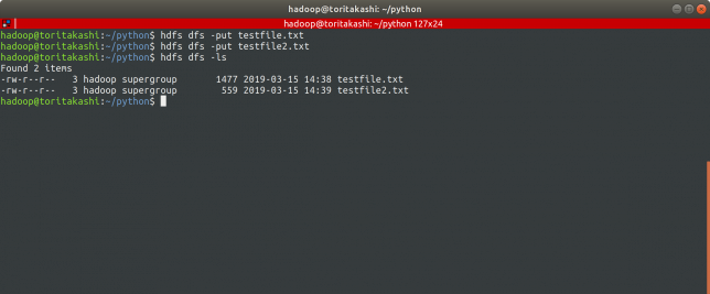 $ hdfs dfs -put testfile.txt $ hdfs dfs -put testfile.txt