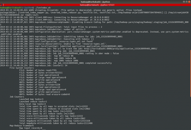 前置きが長くなりましたが、Hadoop streamingを使って転置インデックスのアルゴリズムを動かします。