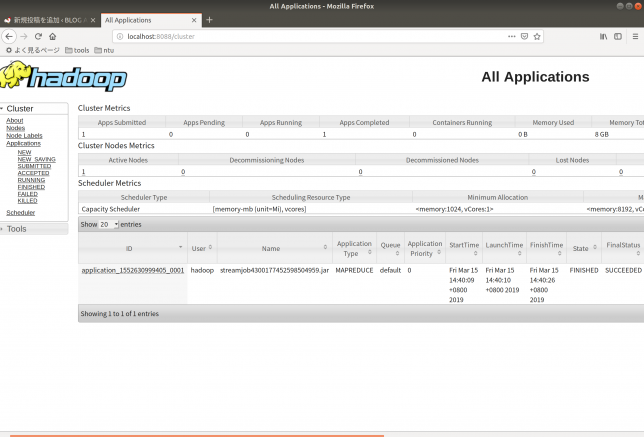 localhost:8088にアクセスして、ジョブが成功したかを確認したりログを見たりできます。