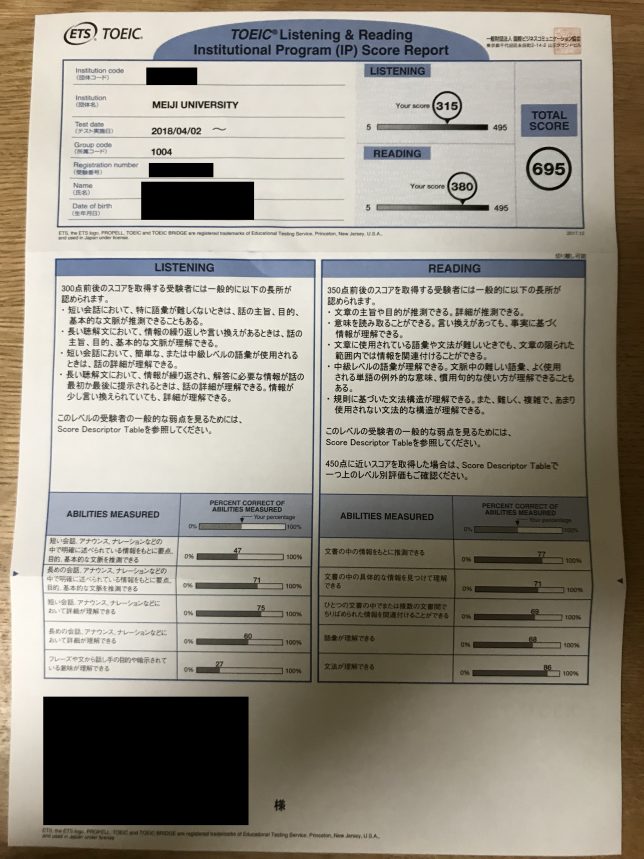 - TOEICで865点、TOEFL iBTで90点を獲得
